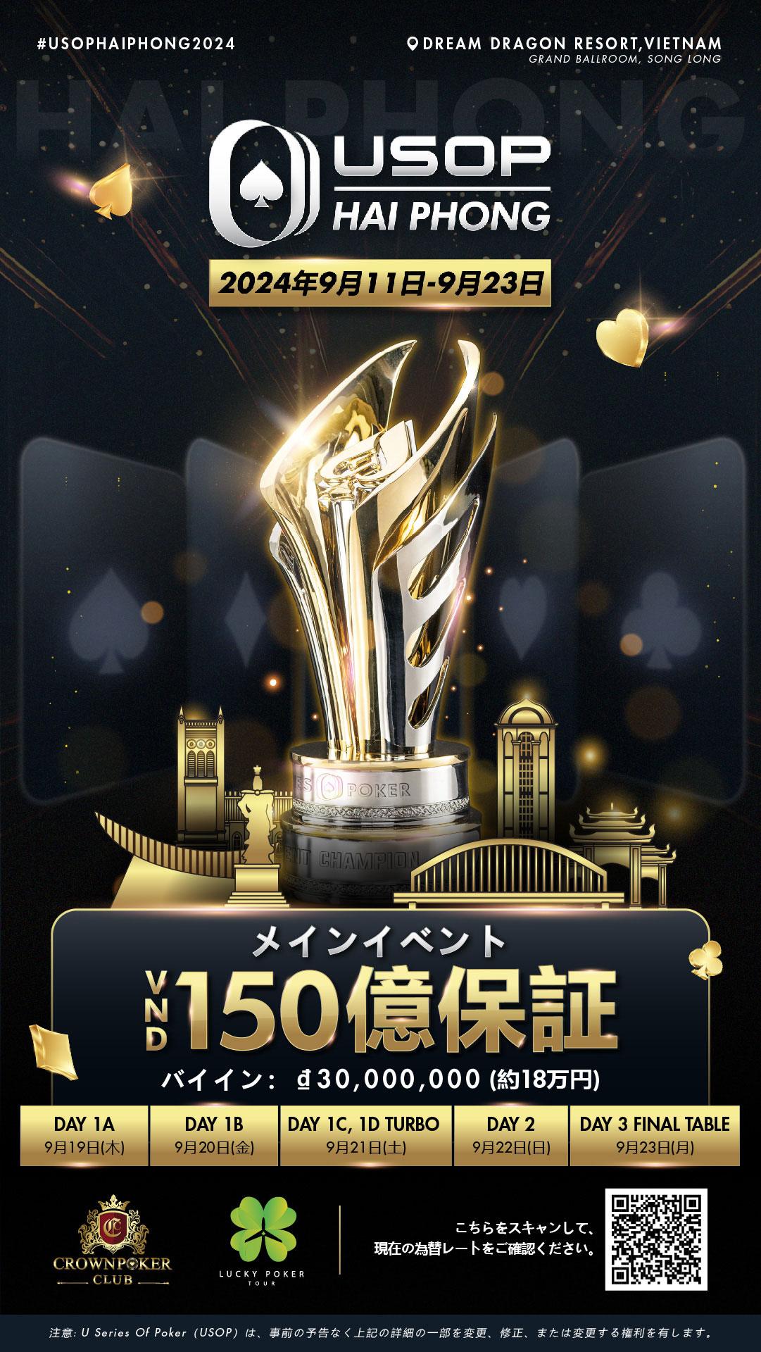 今回のUSOPハイフォンは、総額保証金プールがVND600億を超えるイベントです。メインイベントはVND3,000万のバイインでVND150億の保証を提供します。会期中は全部で66のイベントが あり、ポーカー愛好家からプロフェッショナルまで幅広い選択肢をご用意して皆様をお待ちしています。